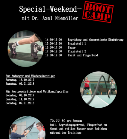 Unser Special-Weekend-Bootcamp ist die ideale Möglichkeit endlich wieder in den Sport einzusteigen oder seine Leistungen noch weiter zu optimieren.